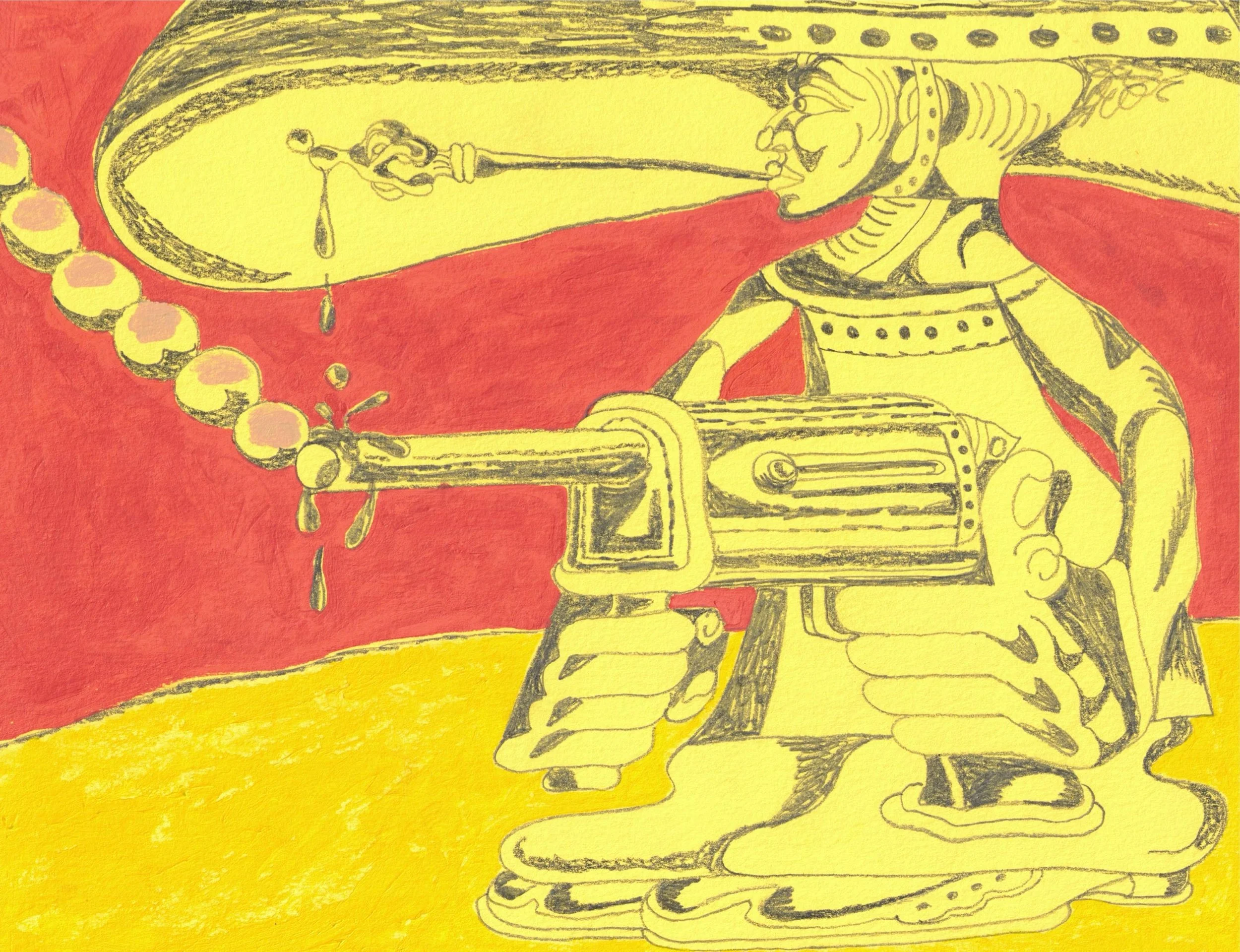 Acrylic, oil woodblock print, and Graphite on Paper